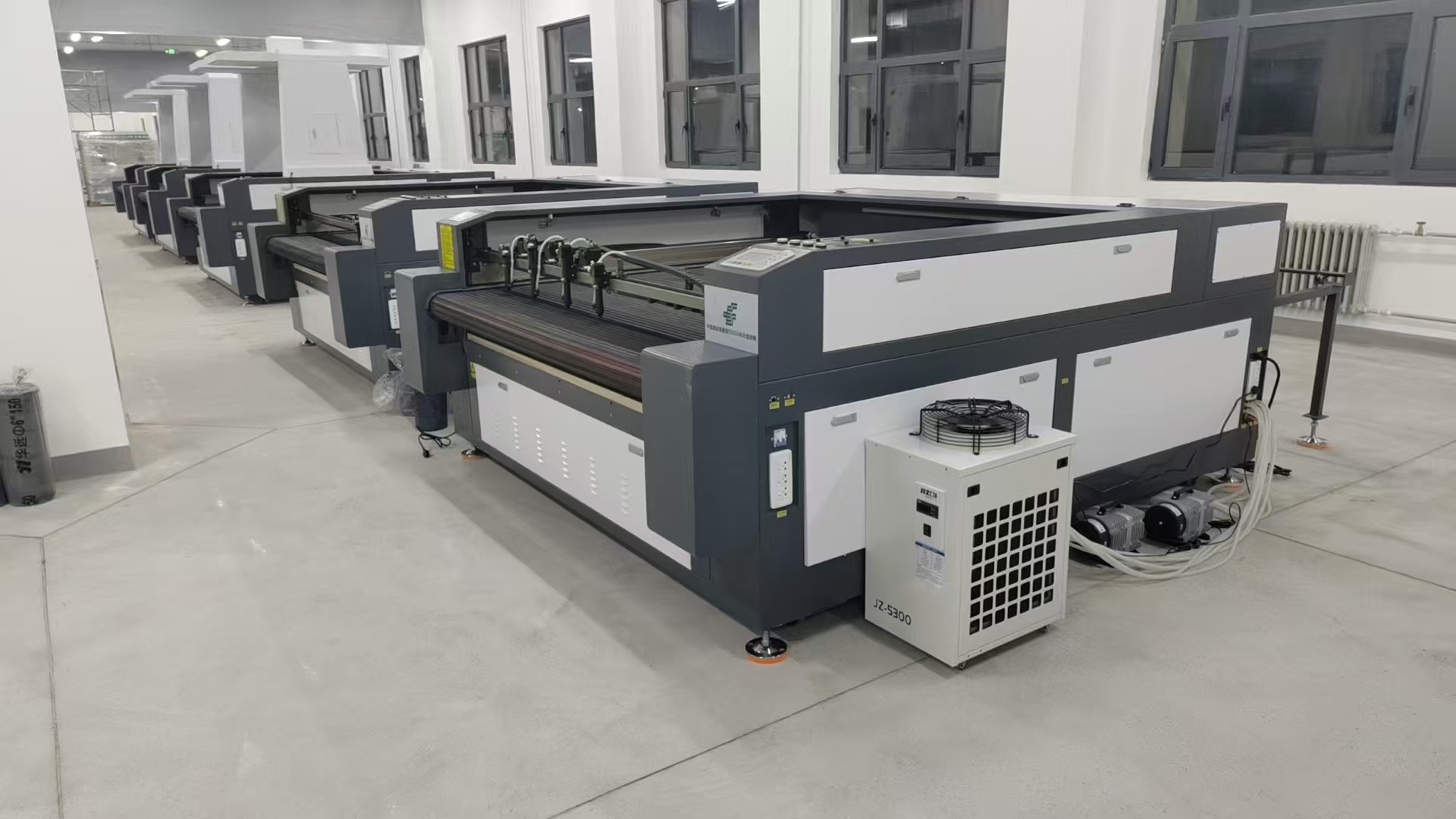 Camera is mounted on the top of the laser cutting machine, After the material is fed to the laser cutting table, the camera takes a photo of the printed pattern at once in the entire work area at one time. The software automatically creates a file according to the shape and size of the pattern, and then the laser heads cut precisely along the outline of the pattern. It only takes about 10 seconds to take pictures and create files.